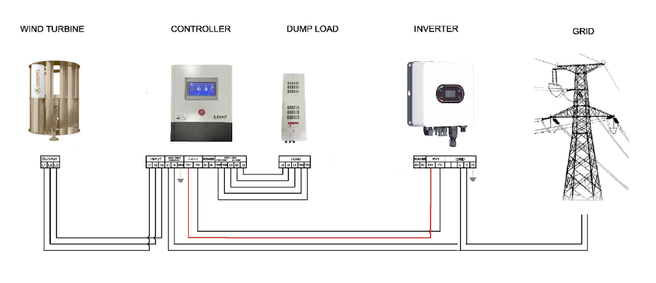 On-grid zapojení vyžaduje invertor a MPPT on-grid brzdový ovladač - Vyhrazený regulátor pro turbíny DRAGON zapojené do on-grid systému