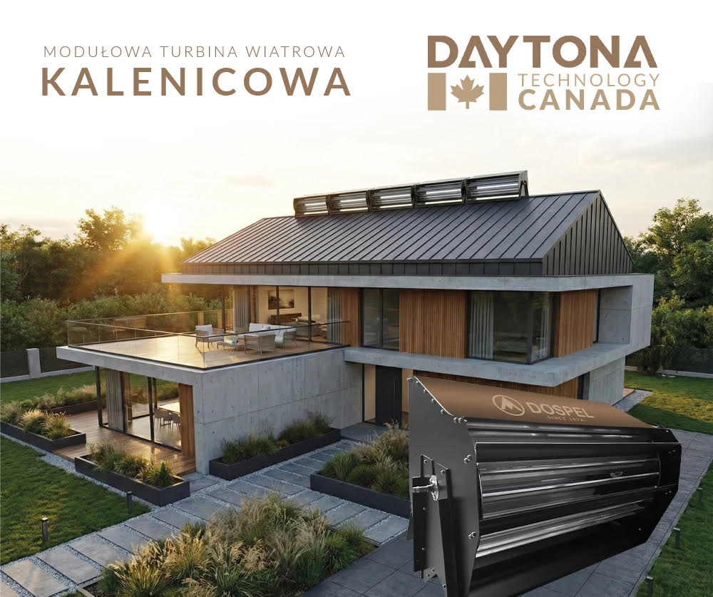 Modulární hřebenová větrná turbína. První modulární větrná turbína na světě montovaná na hřeben – polsko-kanadská technologie (Daytona Technology Canada)